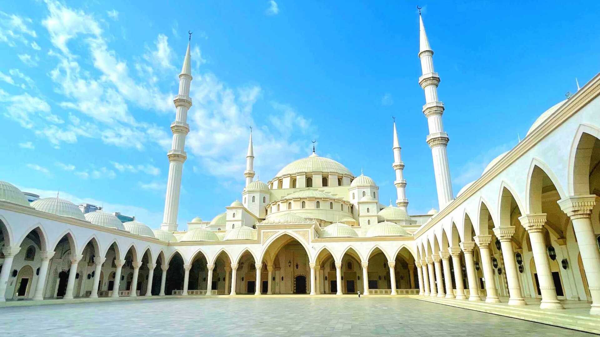 Die Scheich-Zayed-Moschee in Fujairah ist die zweitgrößte Moschee der Vereinigten Arabischen Emirate und ein echtes Wahrzeichen der Stadt. Mit ihren 65 Kuppeln, weißen Marmorfassaden und sechs eleganten Minaretten erinnert sie an die berühmte Moschee in Abu Dhabi.